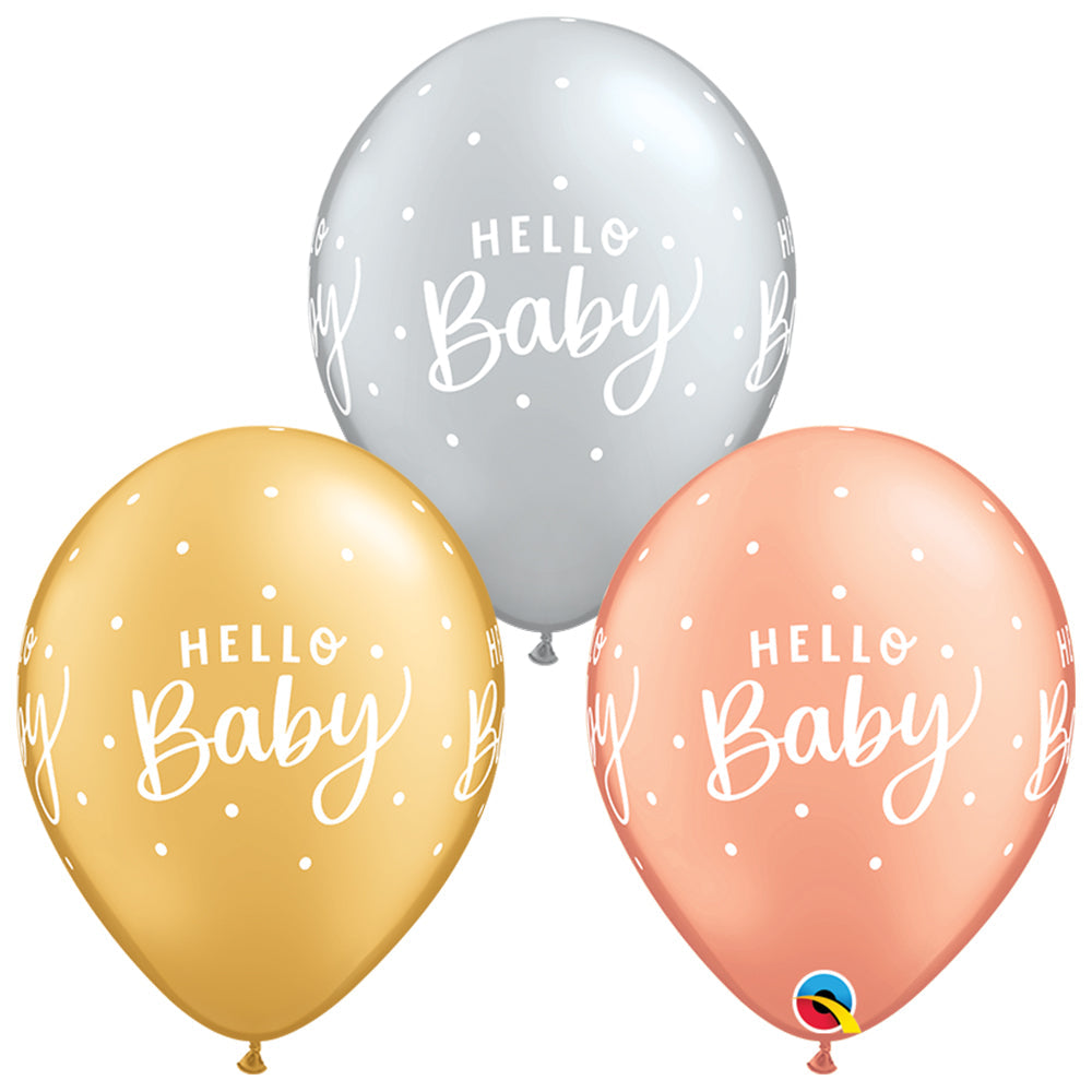 This is a Hello Baby Dots 11″ Latex Balloons (6 count) from Qualatex.