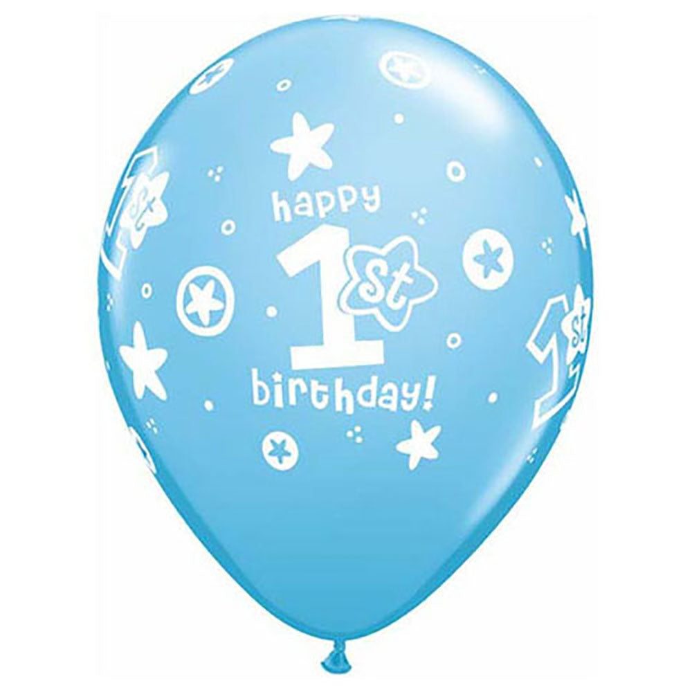 This is a 1st Birthday Circle Stars - Boy 11″ Latex Balloons (6 count) from Qualatex. UPC: 720053793680 VENDOR: Qualatex