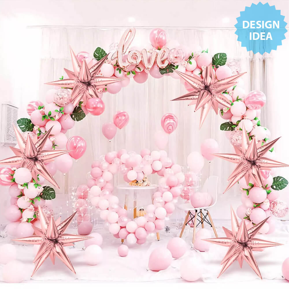 This is a 3D Star-burst - Metallic Light Pink (air-fill Only) 25″ Balloon from Party Brands. UPC: 720053793901 VENDOR: Party Brands
