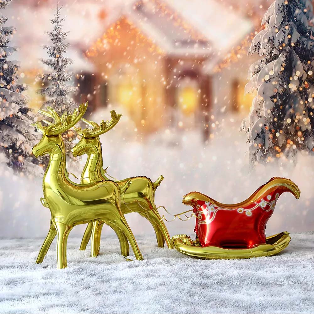 This is a Metallic Gold 3D Standing Reindeer 40″ Balloon from Party Brands.