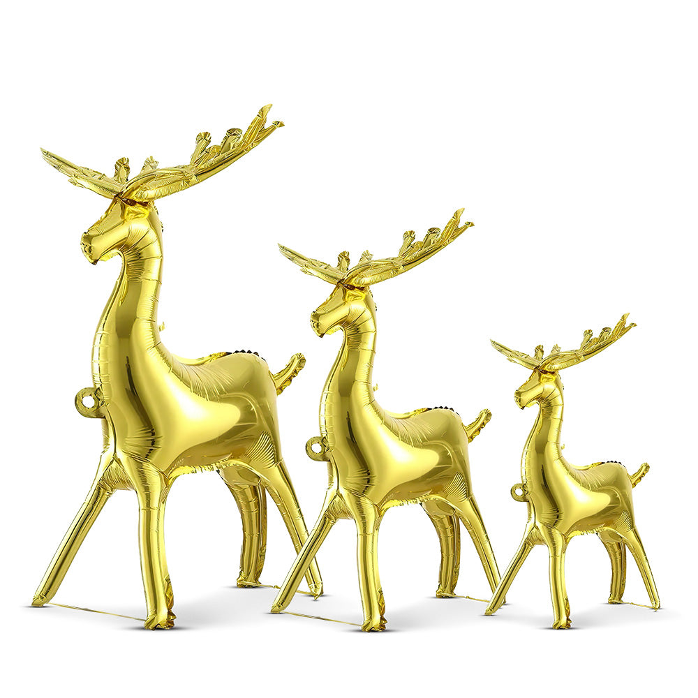 This is a Metallic Gold 3D Standing Reindeer 50″ Balloon from Party Brands.