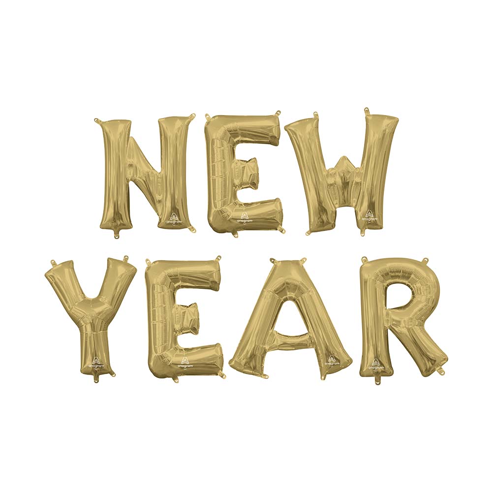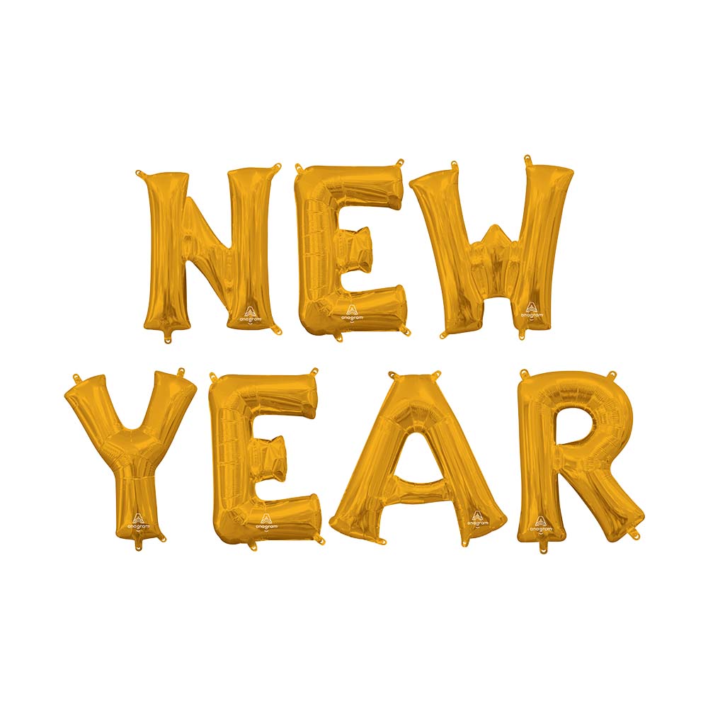 New Year - Anagram Letters Kit (air-fill Only) Gold 16″ Balloons