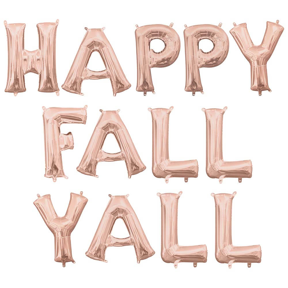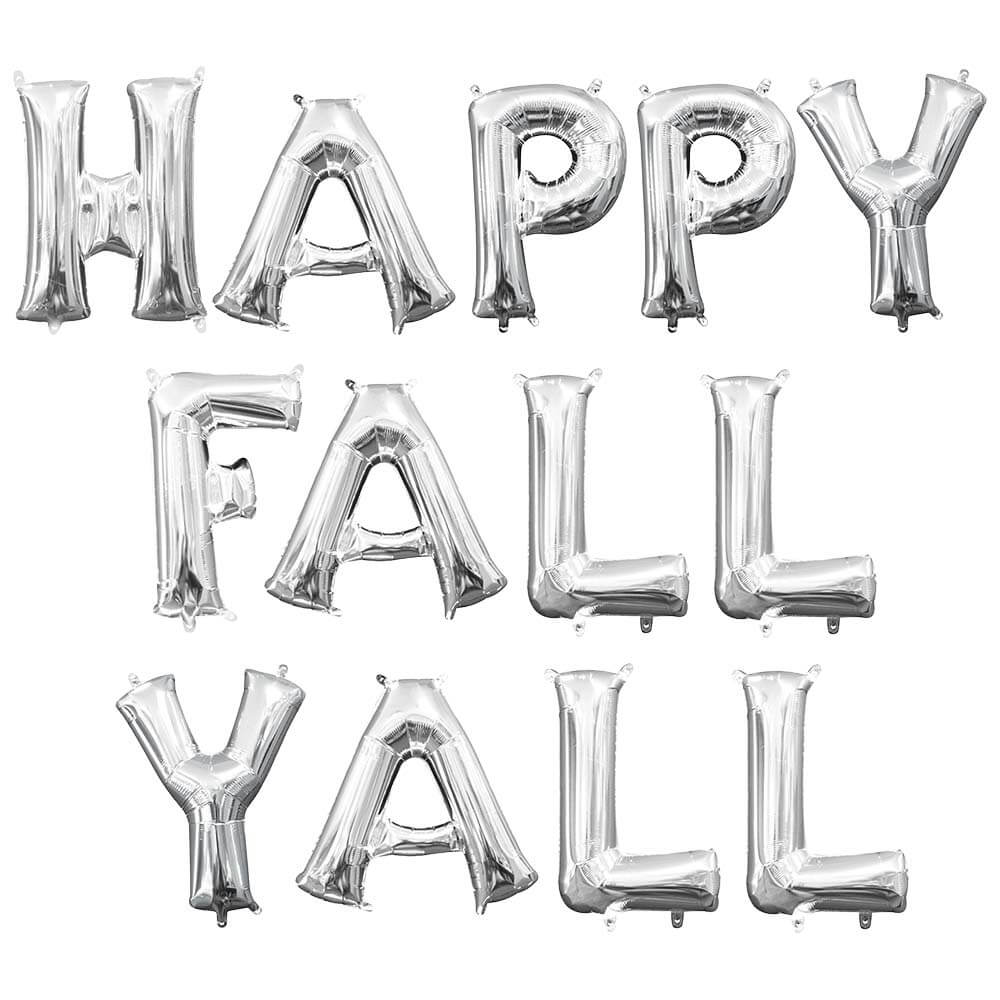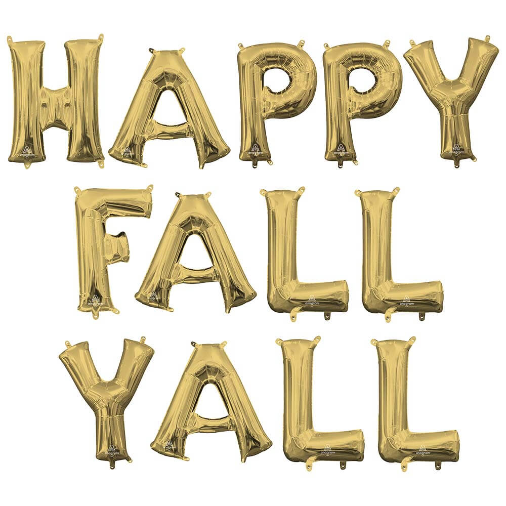 This is a Happy Fall Yall - Anagram Letters Kit (air-fill Only) White Gold 16″ Balloons from Anagram. UPC: 721214004690 VENDOR: Anagram