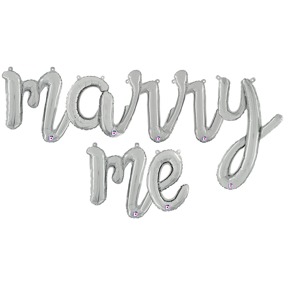 This is a Marry Me - Betallic Script Letters Kit (air-fill Only) Silver (7 count) foil balloon from Betallic. UPC: 721214007028 VENDOR: Betallic