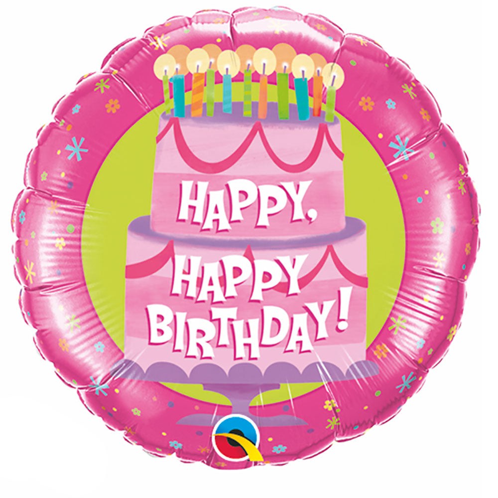 This is a Pink Happy Birthday Cake 31″ Balloon from Qualatex.