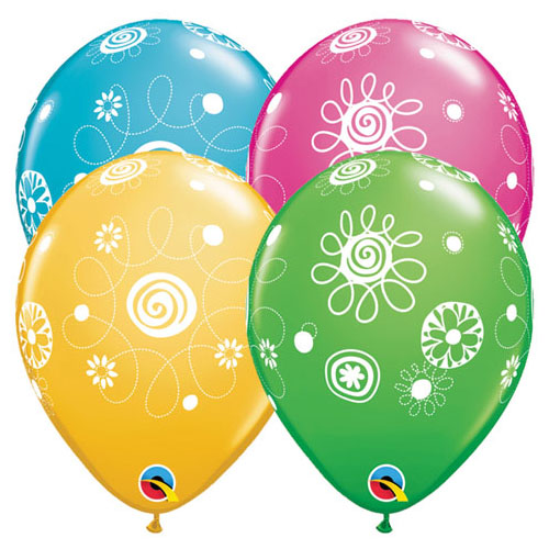 This is a Scribble Circles & Flowers 11″ Latex Balloons (6 count) from Qualatex.