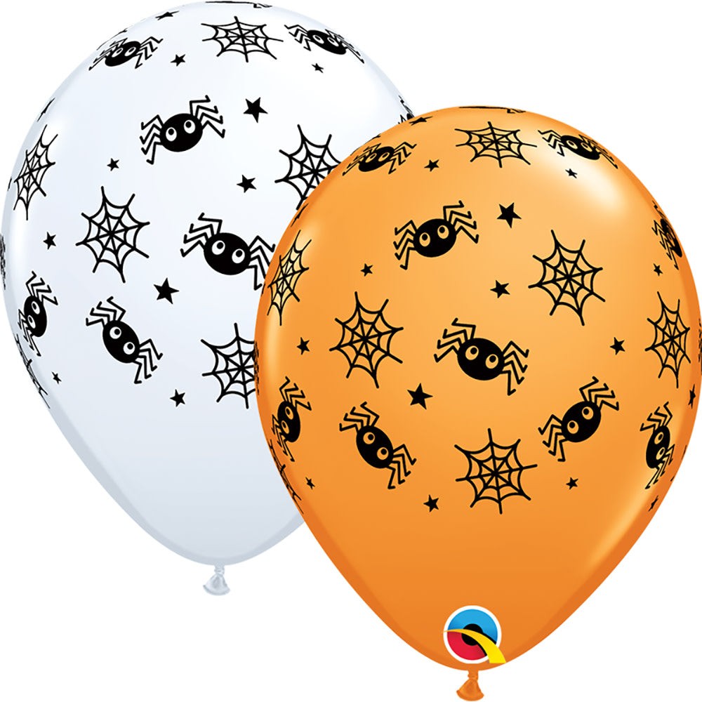 This is a Spiders Webs & Stars 11″ Latex Balloons (6 count) from Qualatex.