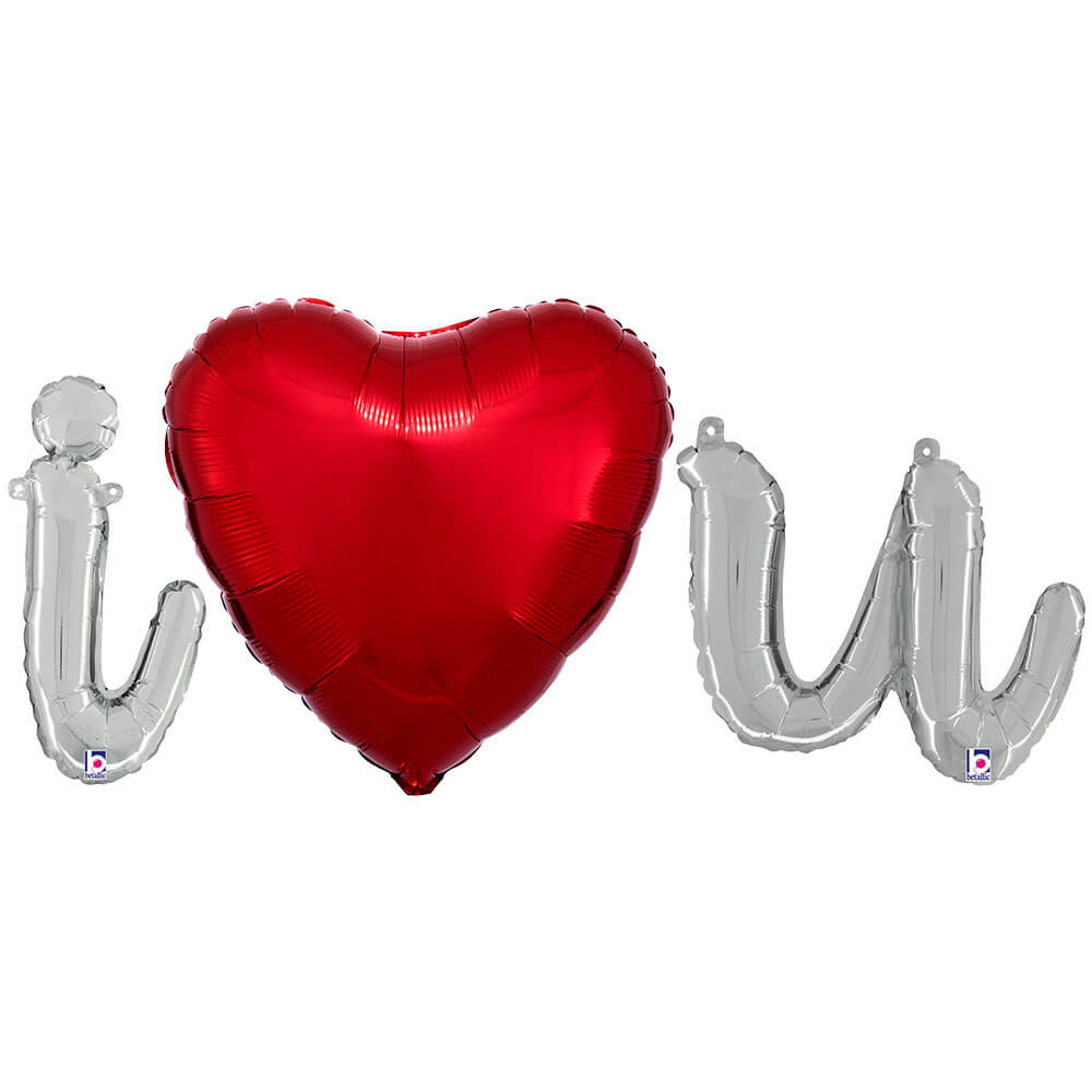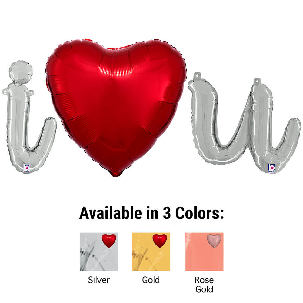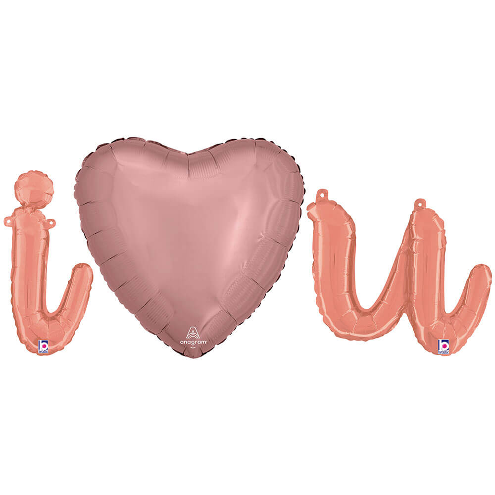 This is a I (heart) U - Betallic Script Letters Kit (air-fill Only) Rose Gold (9 count) foil balloon from Betallic.