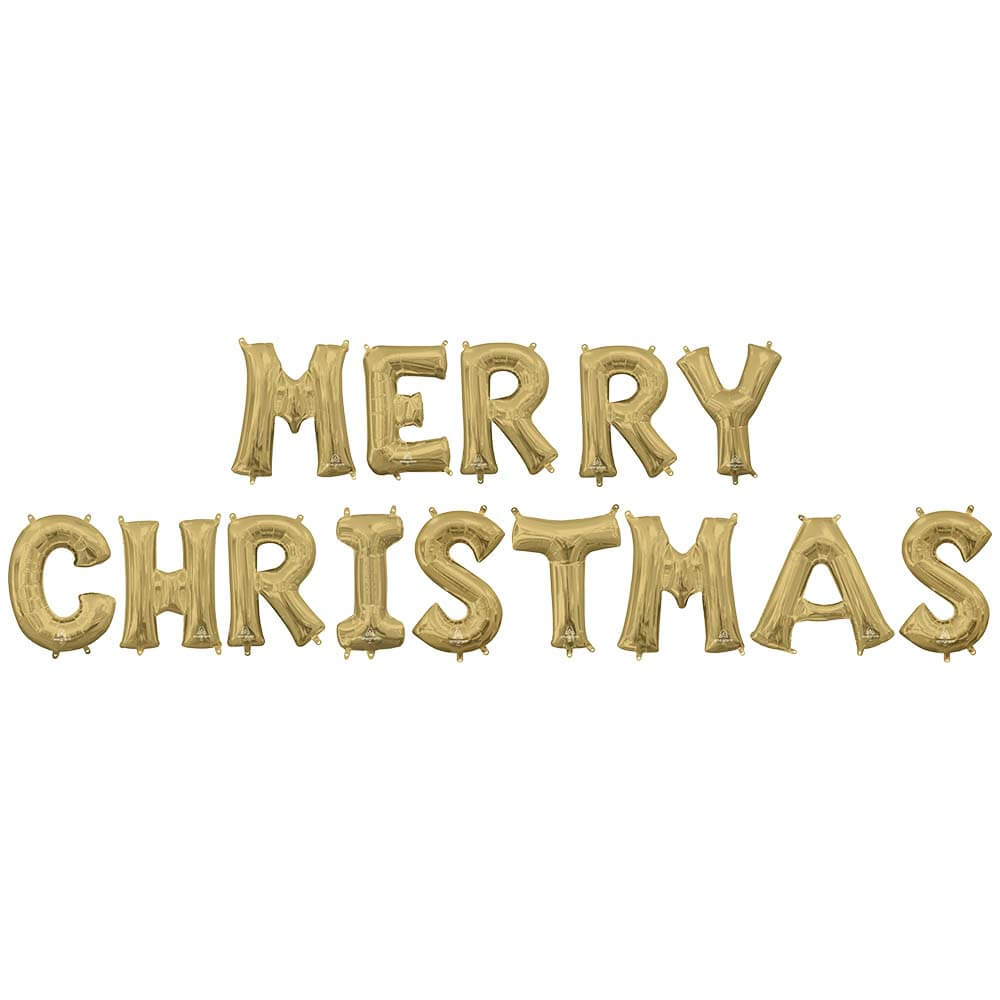 This is a Merry Christmas - Anagram Letters Kit (air-fill Only) Gold 16″ Balloons from Anagram.