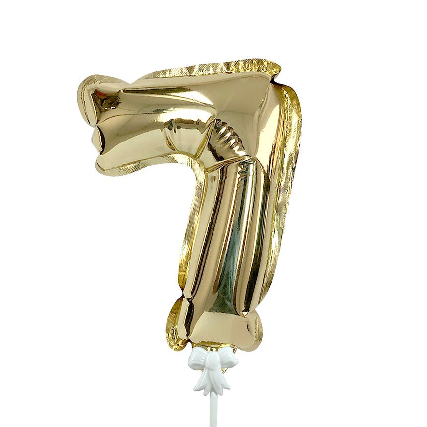 This is a Self-inflating Number 7 - Gold 7″ Balloon from Party Brands.