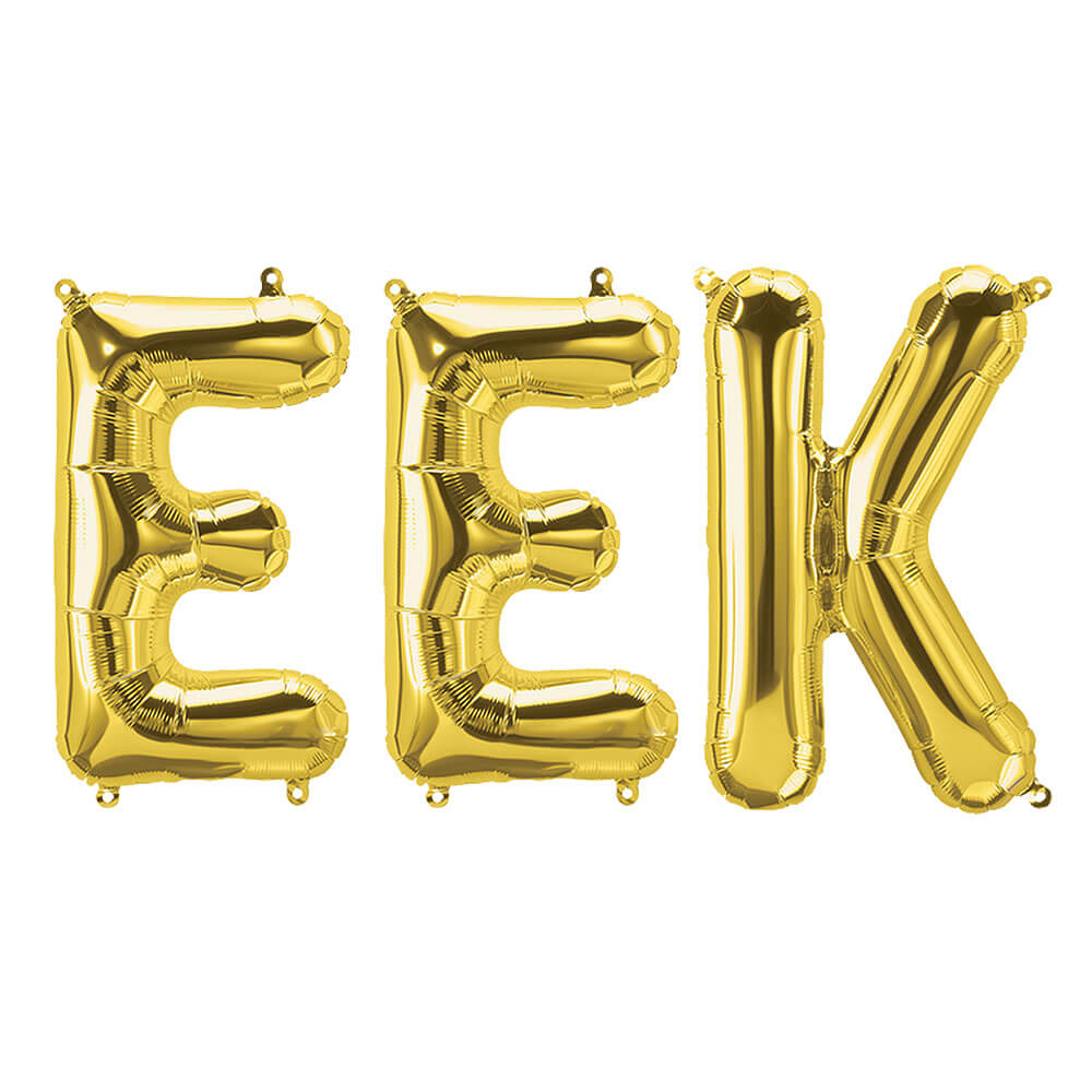 This is a Eek - Northstar Letters Kit (air-fill Only) Gold 16″ Balloons from Northstar. UPC: 721214004423 VENDOR: Northstar