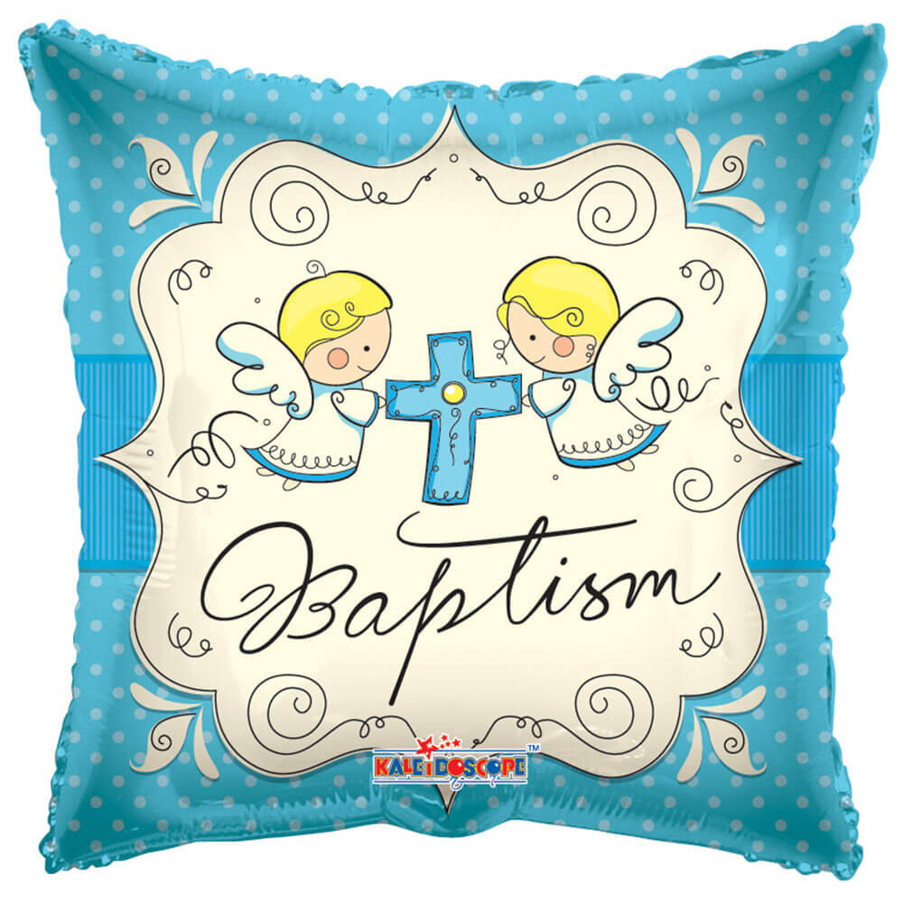 Cute Angels Baptism Boy 18" Foil from Kaleidoscope. UPC: 681070195959 SKU: 19440-18F-K-U-INSTA