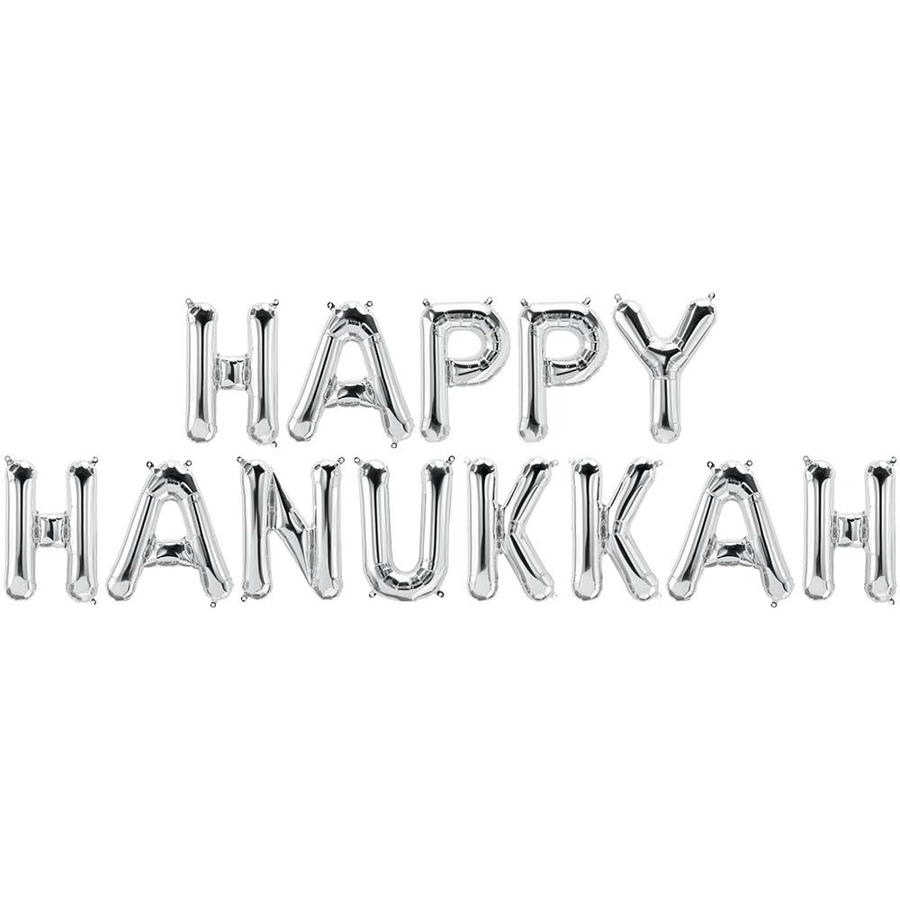 This is a Happy Hanukkah - Northstar Letters Kit (air-fill Only) Silver 16″ Balloons from Northstar. UPC: 721214005468 VENDOR: Northstar