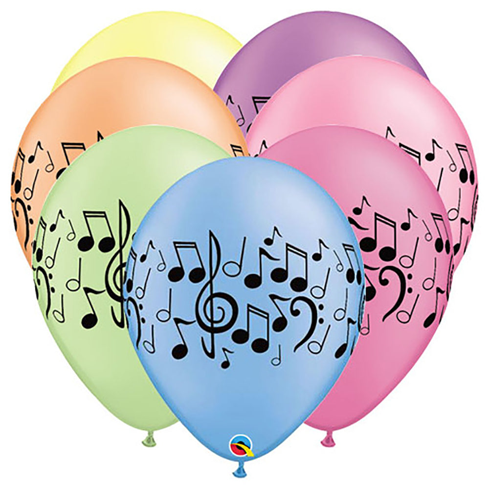 Neon Music Notes Wrap 11″ Latex Balloons (6 count)