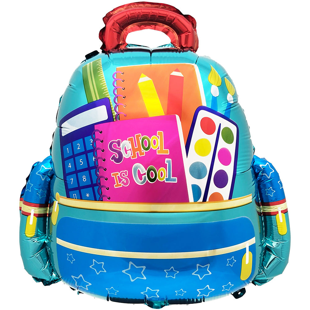 This is a School Is Cool Backpack - Blue 24″ Balloon from Party Brands. UPC: 721214007974 VENDOR: Party Brands